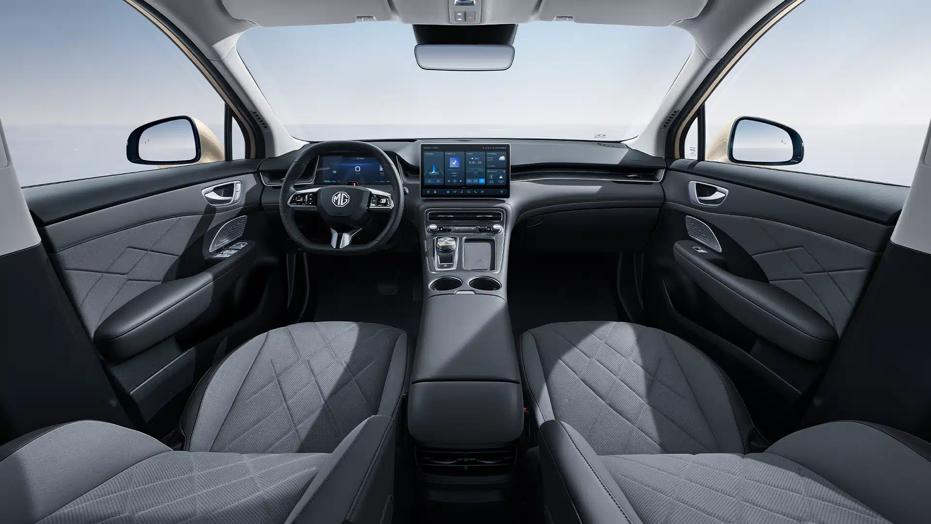 Grå skinn-/semsket seter, oppvarmet & ventilert foran