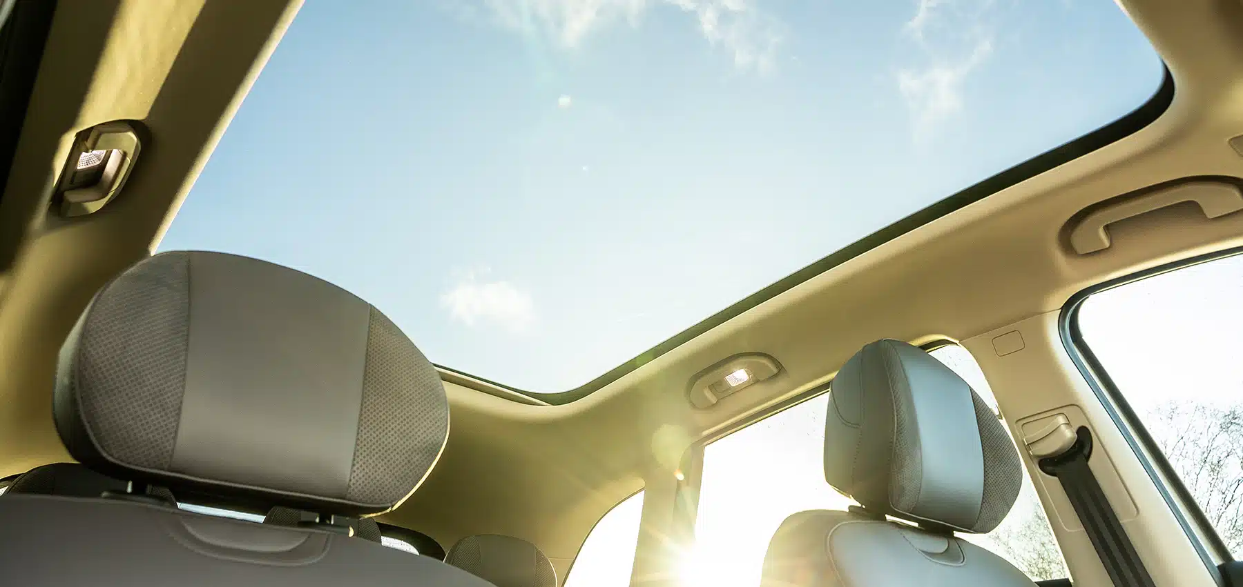 Panoramaglasstak med elektrisk solskjerm