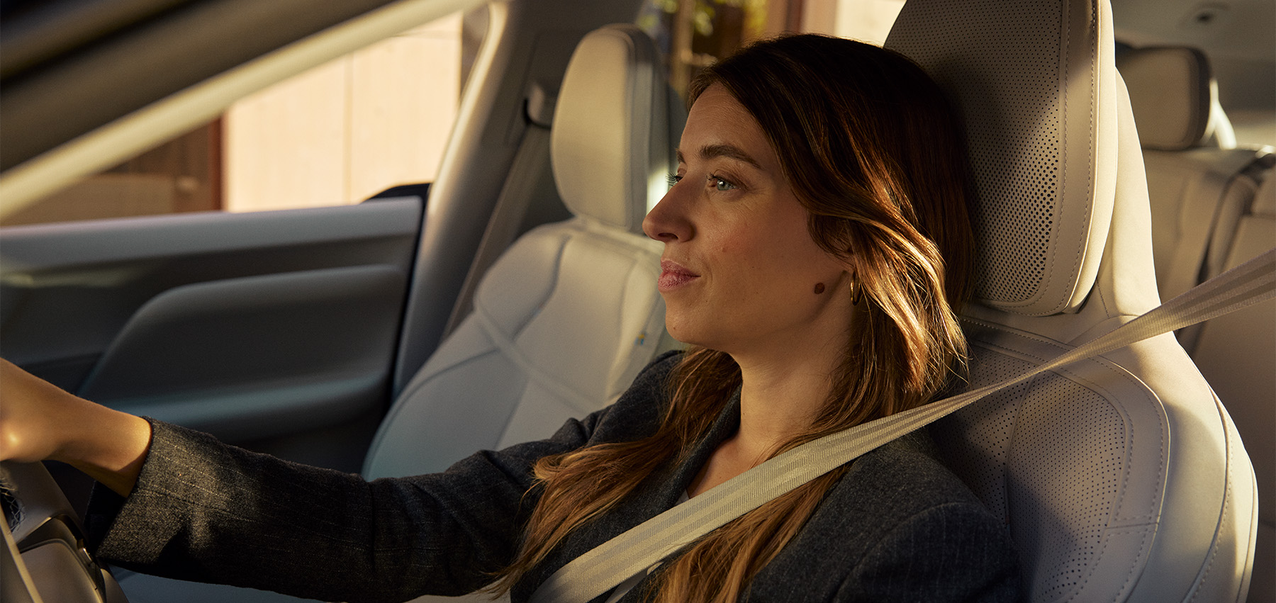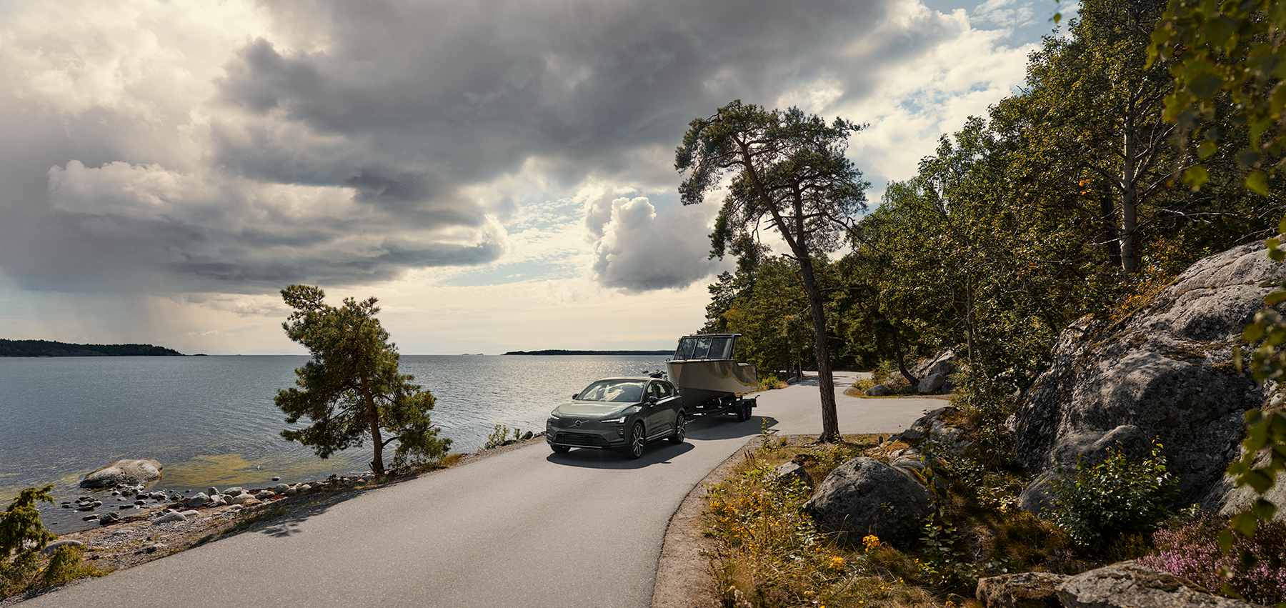 Interiøret preges av Volvos kjente skandinaviske uttrykk, med flere farge- og materialvalg, stemningsbelysning inspirert av nordisk natur og svært høy setekomfort – også på lange turer.